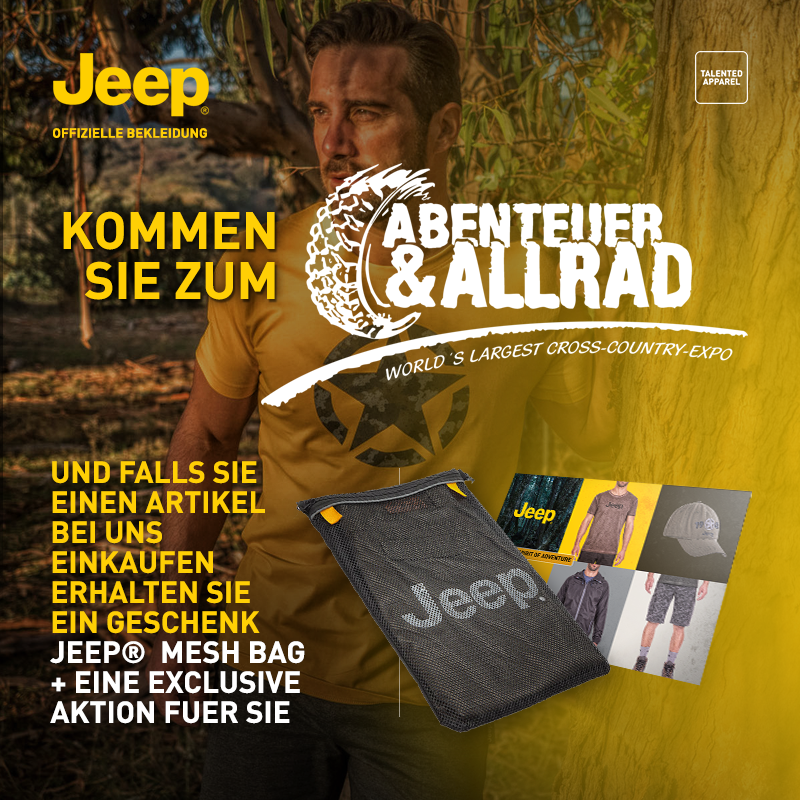 Wenn ihr euch unter https://events.jeep-outfitter.com/event ... 18?LANG=DE anmeldet, des Voucher herunterladet und ausdruckt, bekommt ihr einen Jeep Mash Bag geschenkt.
