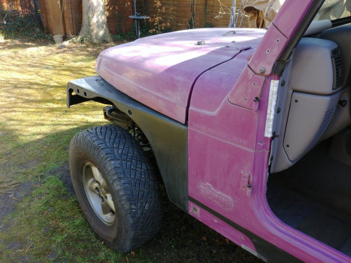 Eigentlich sollten am TJ neue Kotflügelverbreiterungen ungefähr in der originalen Breite angebaut werden.