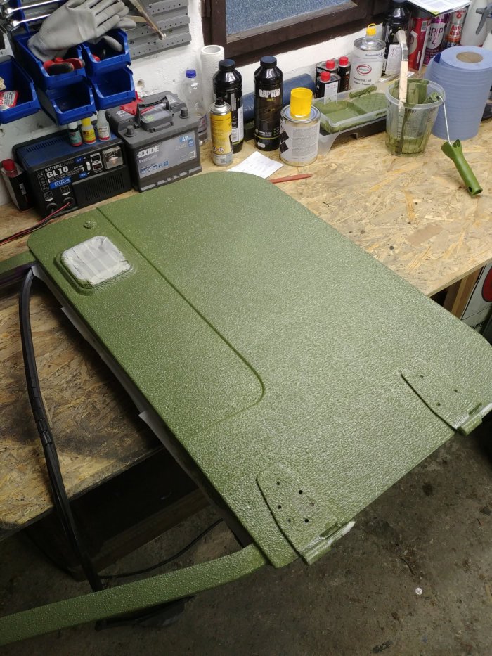 Da hatte ich die erste Tür doch schon so schön in Olivgrün mit Raptor beschichtet....
