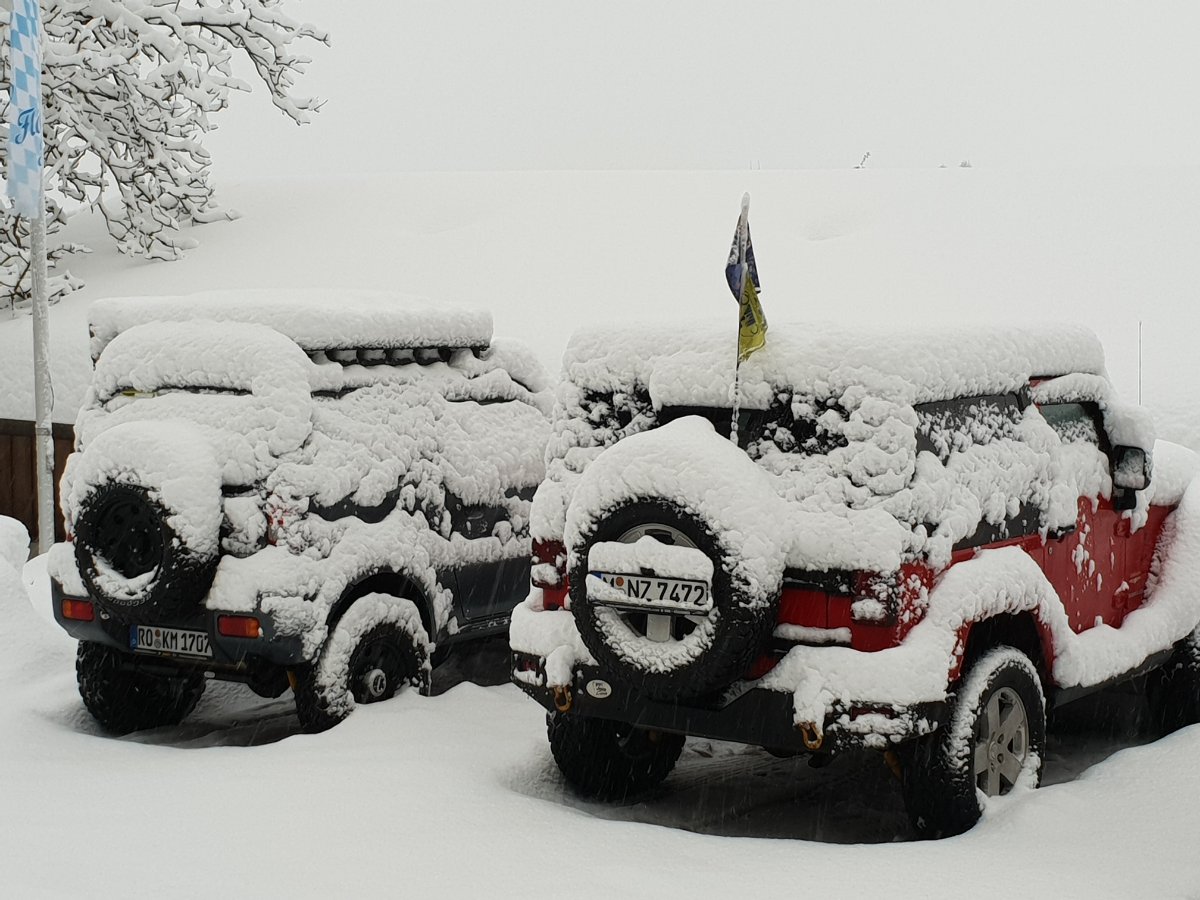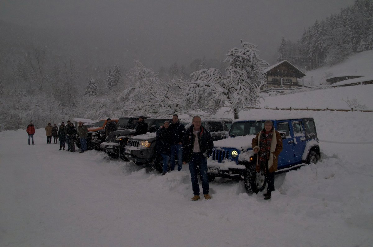 Danke an euch alle für euer kommen. Lustig wars wieder, wenn auch fast schon ein bisserl viel Schnee, aber wir Jeeper lieben ja die Herausforderung. Als ich aus meinem eingeschneiten Parkplatz fast nicht mehr rauskam keimte für einen kurzen Moment die Hoffnung, daß wir im Duftbräu bleiben müssen - Schlimm, schlimm. :D