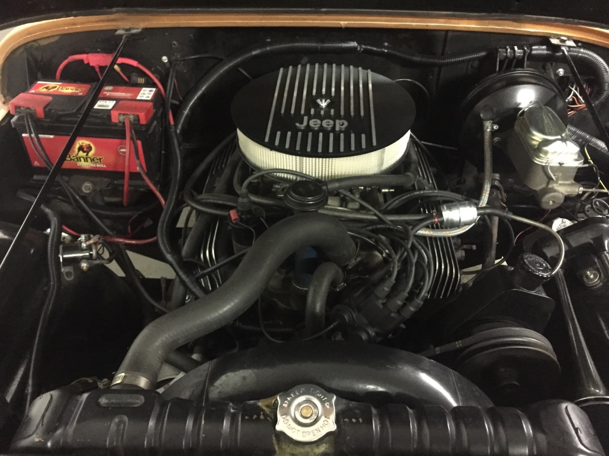 Seit dem habe ich ein 2,5" Fahrwerk verbaut, die Elektrik im gesamten Fahrzeug erneuert, Ventildeckel, Luftfilter, Zündspule, -kabel und Verteiler, Lenkgetriebe und -stange sowie die Sitze ausgetauscht und den Jeep fertig für die H-Zulassung gemacht.