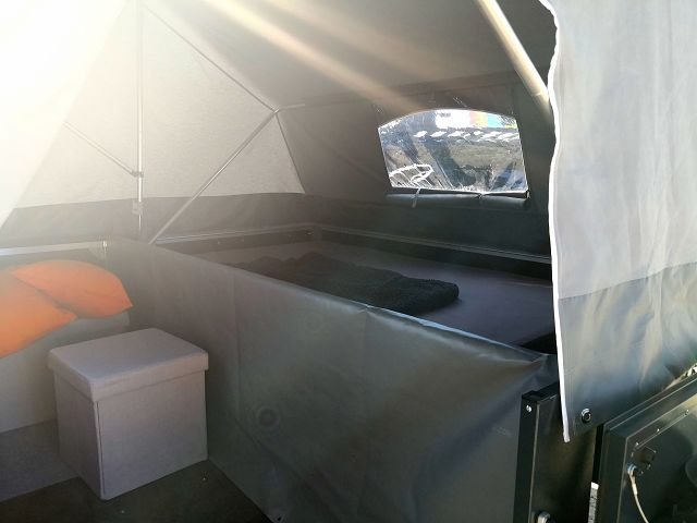 Mein Favorit, weil genial einfach, mit massig Platz und sehr gut verarbeitet, war dieser Anhänger. Leicht in etwa 5 Minuten aufzubauen, simpel und sogar Offroad-tauglich sowie auch recht preiswert, wenn man mal so vergleicht.