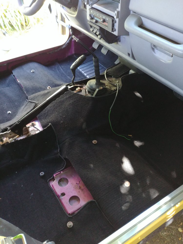 Nachdem ich den alten Teppich entfernt hatte, da ja ein Neuer reinkommt, mußte ich oberflächigen Rost feststellen.