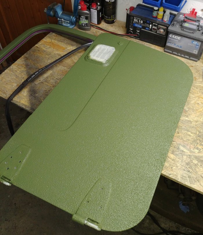 Da hatte ich die erste Tür doch schon so schön in Olivgrün mit Raptor beschichtet....