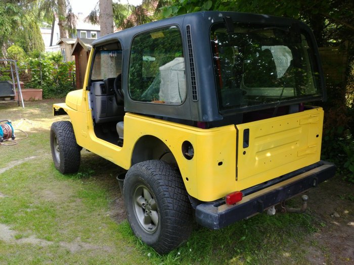 Nach einigen Umentscheidungen, was die Farbe angeht, bin ich bei einer original Jeep-Farbe namens "Dune" gelandet. Ist in Real eher ein Beige-Gelb und nicht so knallig gelb wie auf den Bldern.