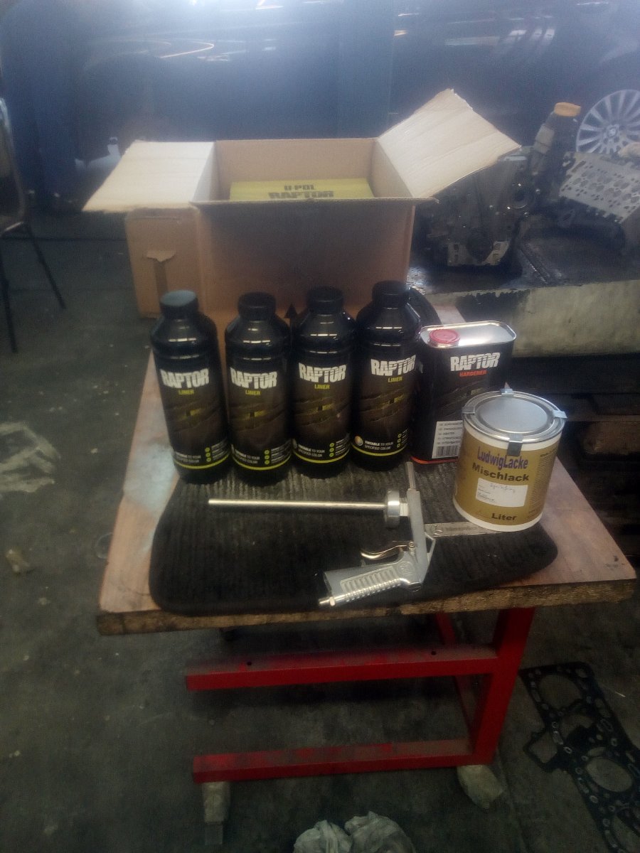 Heute bestellt 8l U-Pol Raptor klar ( Dank an A-WE und seinem Umbaubericht) und 1l Geminigraumetallic, das reicht