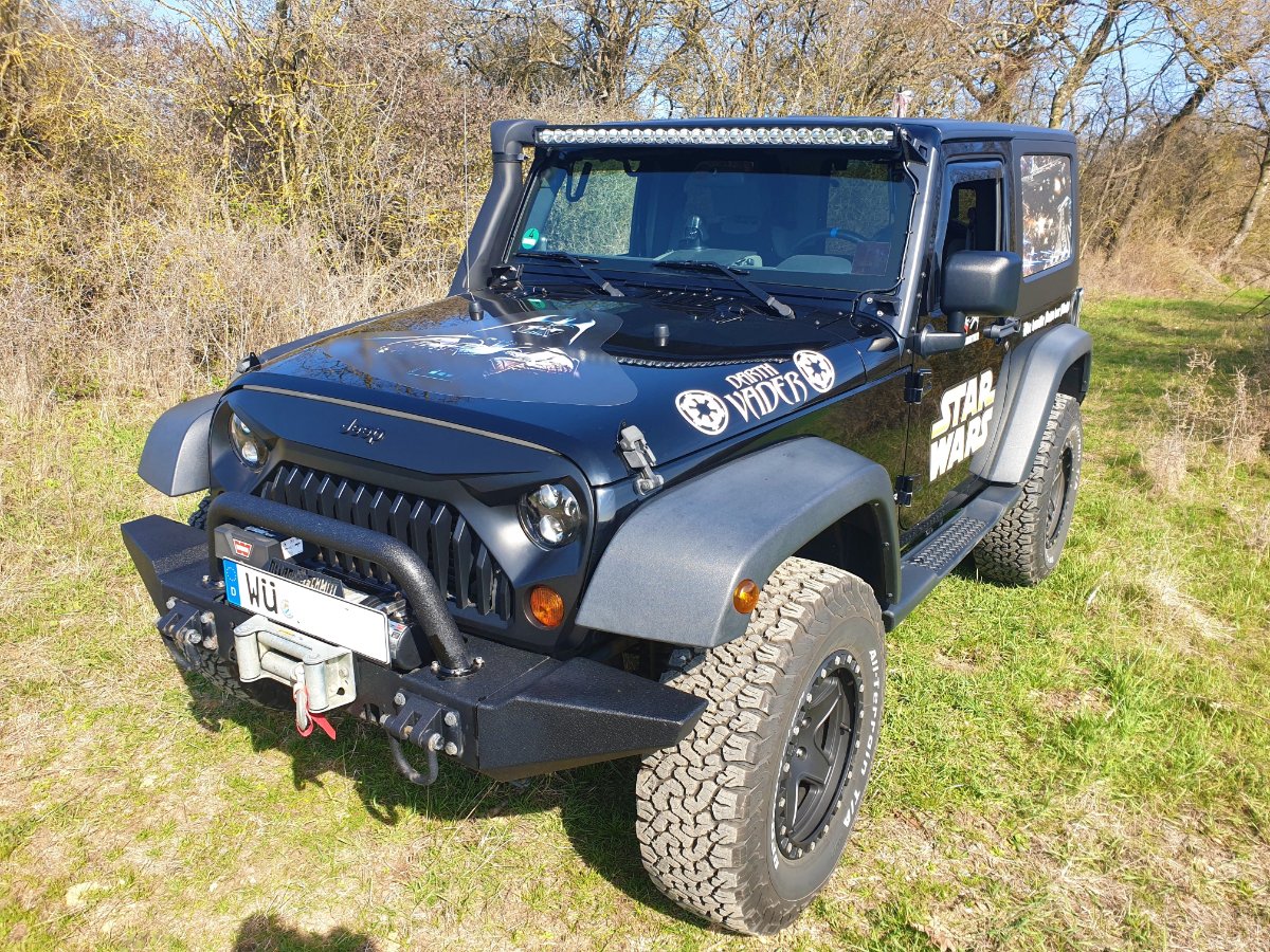 Fahre seit 3 Jahren Jeep Wrangler Rubicon. Seit ich ihn gekauft habe, wurde er immer weiter umgebaut und mit Star Wars-Aufklebern versehen.