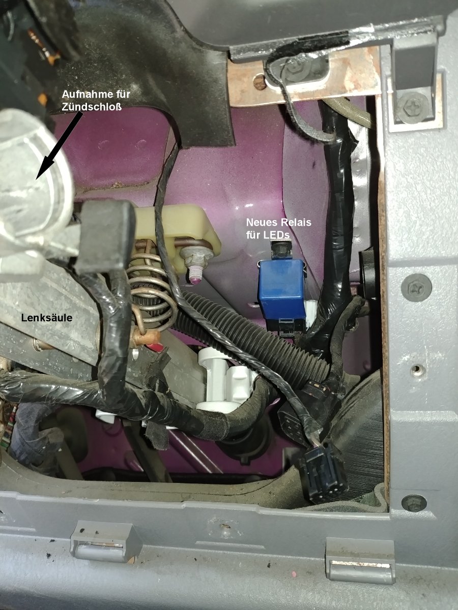 Anbei noch ein Bild mit dem ganzen Bereich rechts der Lenksäule mit dem neuen Relais...