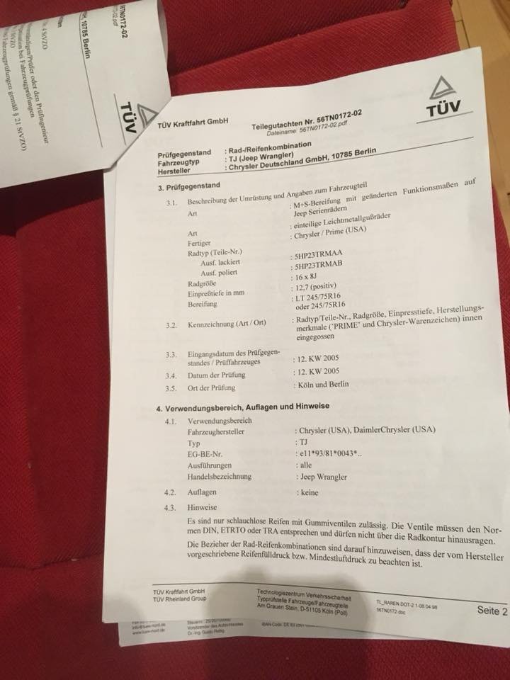 Hi, ich bin mal wieder auf der Suche nach dem TÜV Gutachten für die Rubicon Felge (5HP23TRMAB) auf dem TJ .