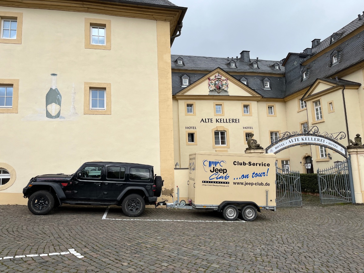 Wir reisen mit dem Jeep Hänger alias Service-Mobil an, haben jede Menge Bierzelt Garnituren dabei. Für Sitzmöglichkeiten ist also gesorgt.