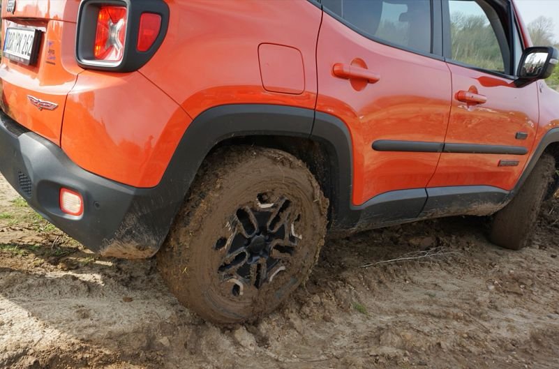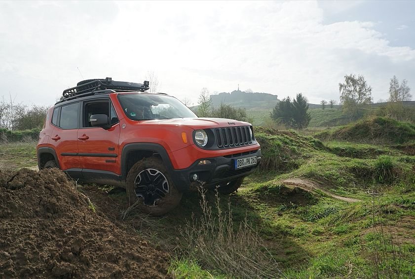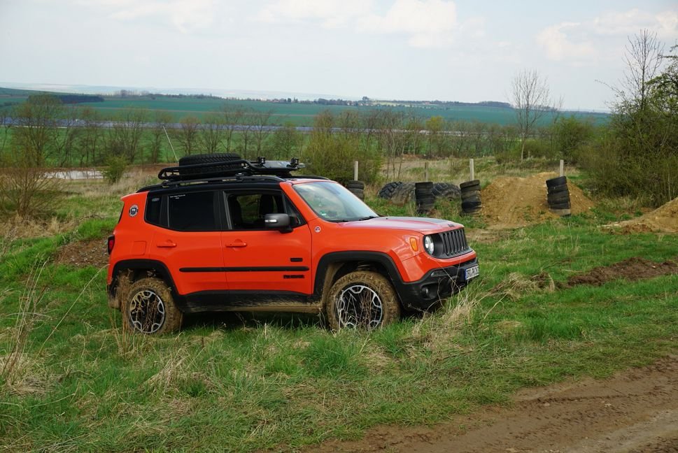 Jeep Renegade Trailhawk, Omaha Orange, Höherlegung, größere ATs, Dachkorb und Zusatzscheinwerfer etc..