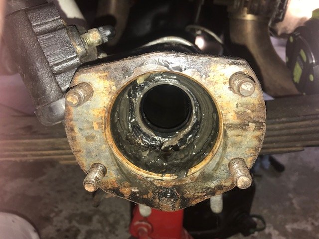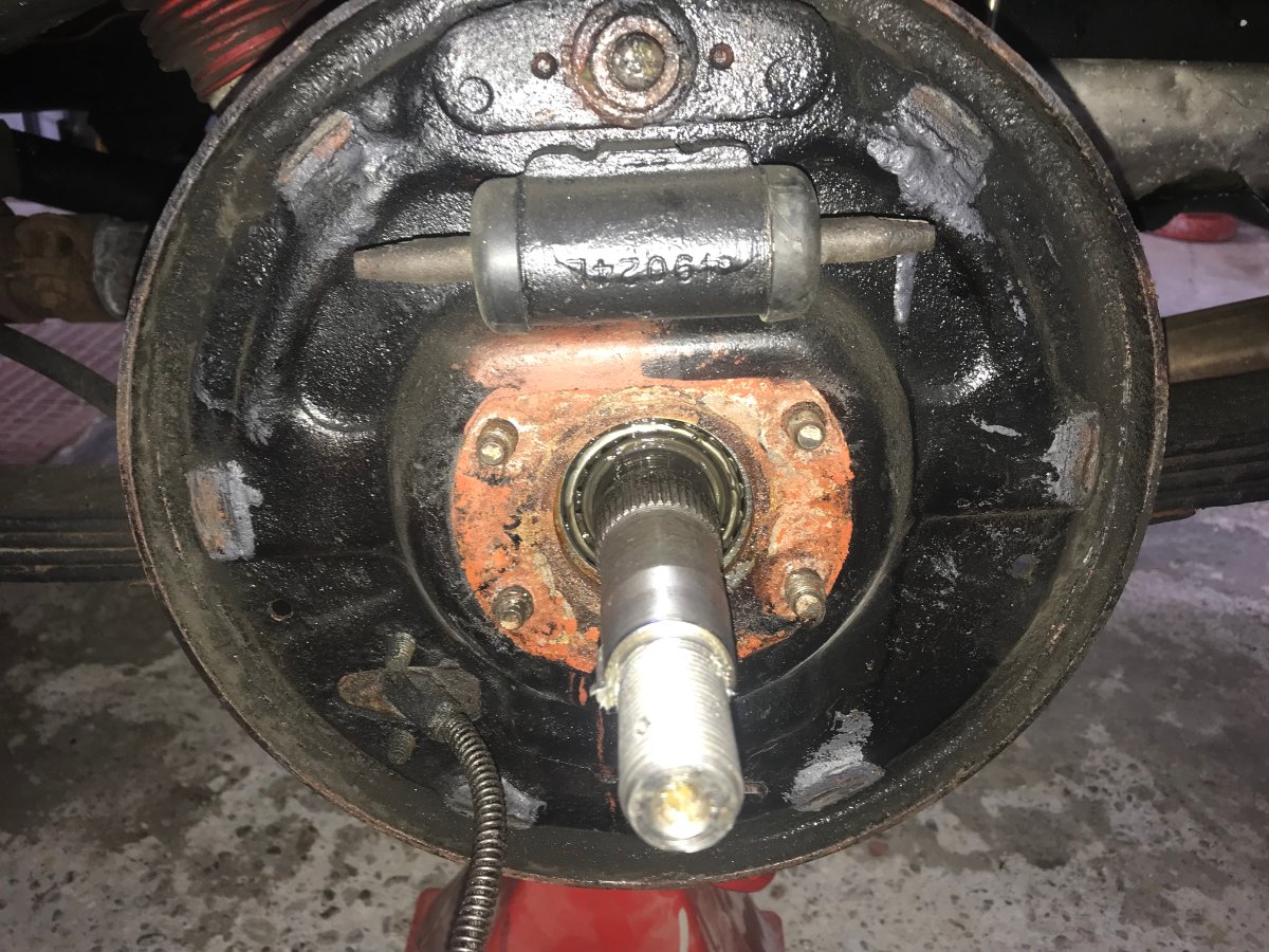 so nach langem hin und her, habe ich auf der linken Seite meine Hinterachse nun alles runter gerissen, Radnabe, Bremse und die Steckachse gezogen.